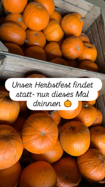 So langsam starten wir in die gemütliche Jahreszeit und da darf unser Herbstfest für die ganze Familie natürlich nicht fehlen. Freut euch über leckere Speisen und Getränke, die Kita-Kinder werden wieder für uns singen, Kürbisse möchten geschnitzt werden ;) und noch vieles mehr...